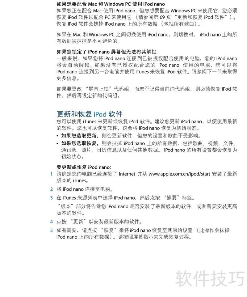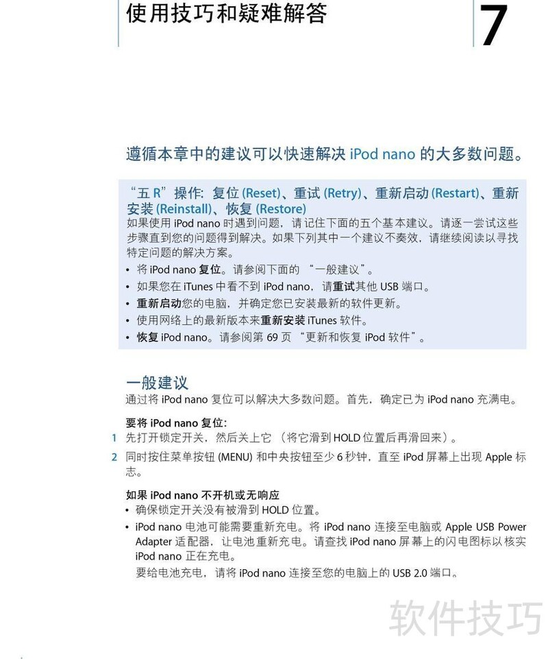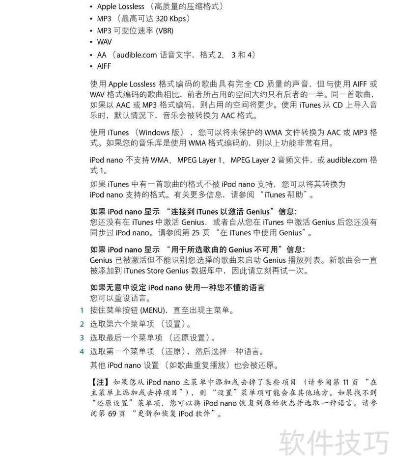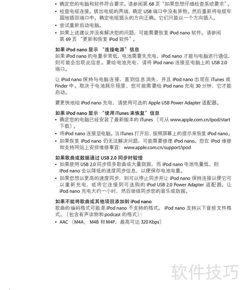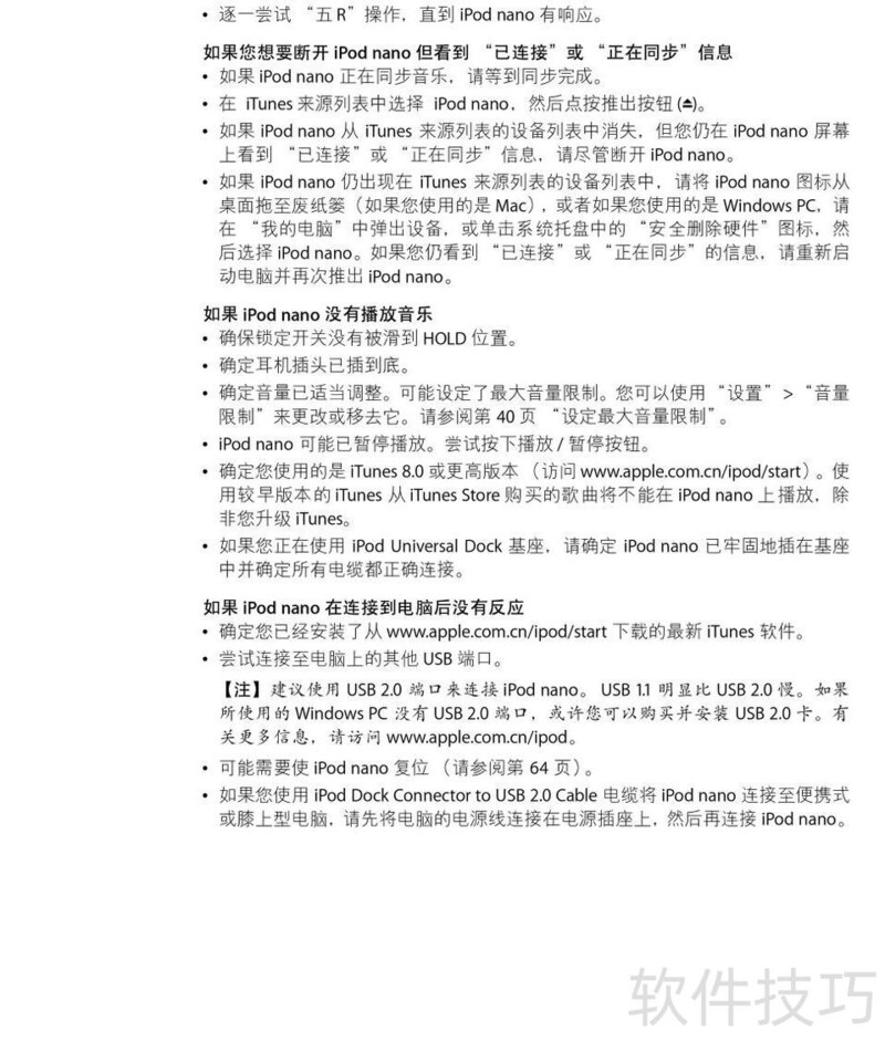 、 本文是苹果iPod Nano音乐播放器的使用指南,详细说明产品操作步骤及常见问题的解决方法,帮助用户更好地掌握设备功能并顺利使用。