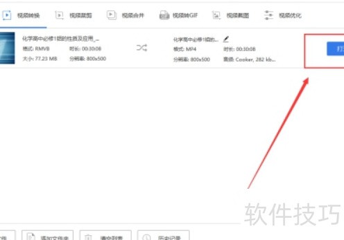 9、 转换完成后,点击右上角打开按钮,即可查看已转为MP4格式的视频。