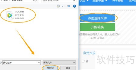3、 点击添加文件,将需转换的FLV文件导入工具页面。