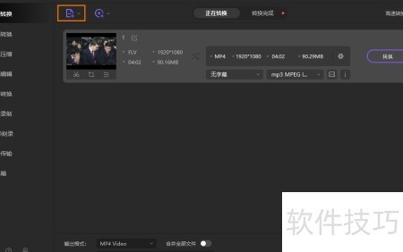 2、 打开电脑上的万兴优转,点击添加按钮从文件夹导入FLV文件,或直接将FLV视频拖拽至文件列表即可完成导入。