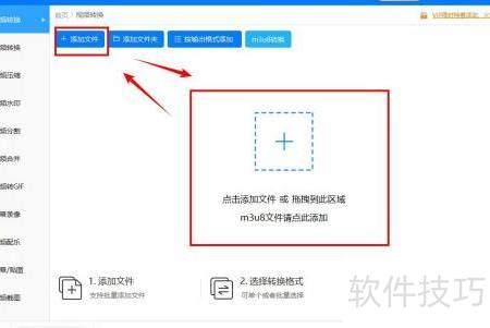 2、 拖动视频至指定区域或点击按钮添加文件。