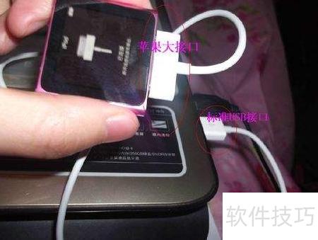2、 将iPod nano第六代通过苹果专用数据线连接至电脑USB接口,一端较大接口接入iPod nano,另一端标准USB接口插入电脑即可完成连接。