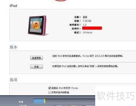 9、 主界面将切换为设备的摘要页面,展示iPod nano 6代的基本信息。