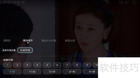 7、 播放影片时,按下遥控器菜单键,进入离线缓存功能,选择清晰度、集数及存储位置,确认后即可完成视频缓存。