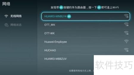3、 发现智联路由器时,界面顶部将提示按下路由器Hi键(无需手动输入密码),即可自动连接盒子至该Wi-Fi网络。