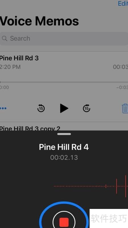 1、 打开语音备忘录,点击底部红色按钮即可开始录音。