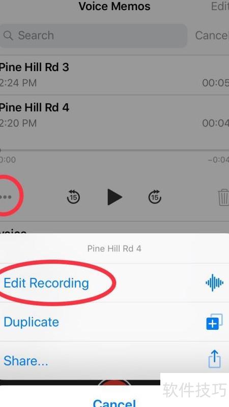 3、 选择要编辑的录音,点击下方三个点,在弹出菜单中选取编辑录音即可进行操作。