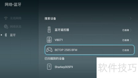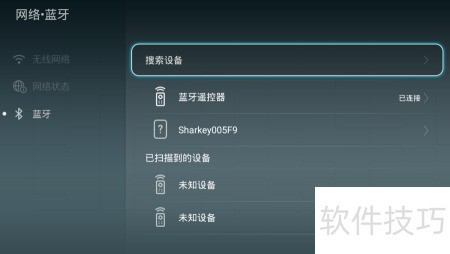 3、 进入网络·蓝牙页面,选择蓝牙选项,点击搜索设备查找可配对的蓝牙设备。