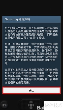 3、 阅读三星免责声明后,请点击确认按钮。
