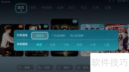 2、 长按遥控器语音键启动语音功能,再按菜单键可选择方言(如粤语、四川话)。建议使用普通话,方言仅限体验,体验后请调回普通话。