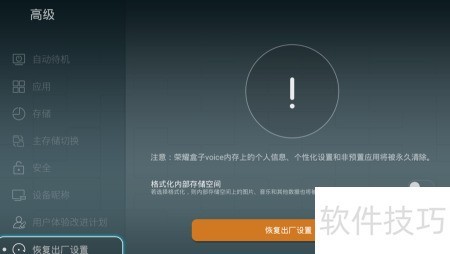 当用户希望清理荣耀盒子Voice中已安装的第三方应用或清除下载缓存以提升运行速度时,常选择恢复出厂设置。以下是详细的图文操作指南,帮助您轻松完成华为荣耀盒子Voice的恢复出厂设置过程,让设备重回初始状态,恢复流畅体验。