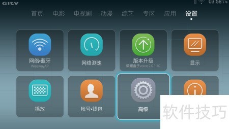 1、 启动华为荣耀盒子语音版,进入设置菜单后点击高级选项进行配置。