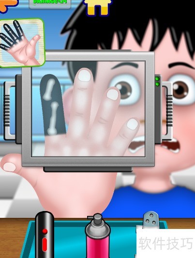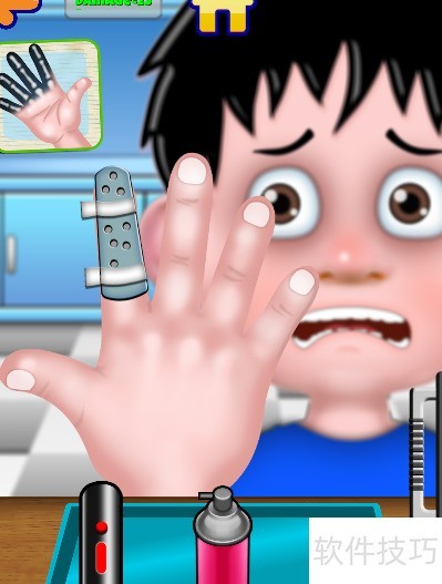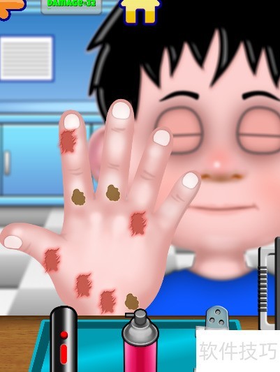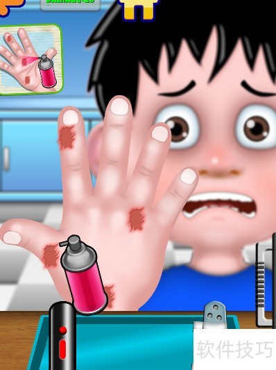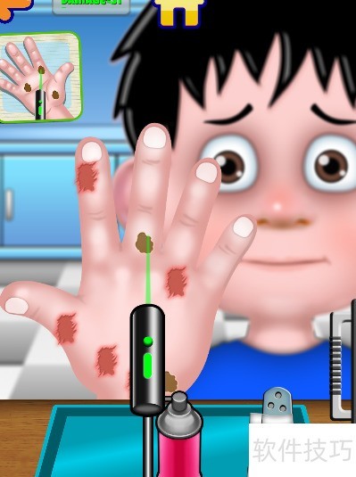 3、 使用喷雾工具对准手部出血处进行处理,所示。