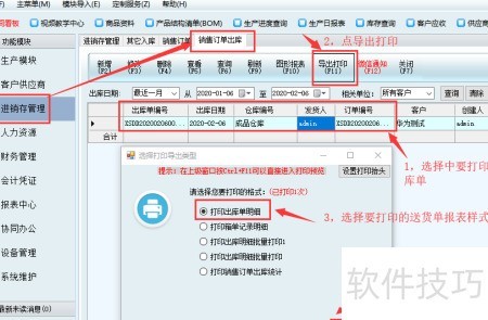 2、 点击导出打印,选择出库单明细,预览后进入送货单样式界面。