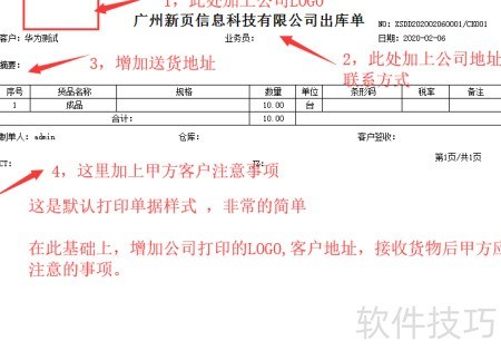 3、 预览界面设计简洁,将展示甲方送货地址、发货地址、客户单号、常规备注及公司LOGO等相关信息,便于核对与确认。