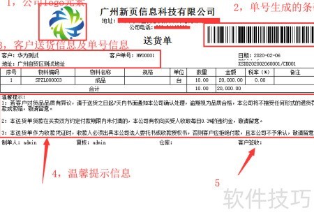 14、 包含LOGO、条码、客户资料及签收栏等信息。
