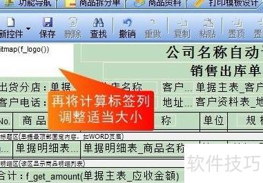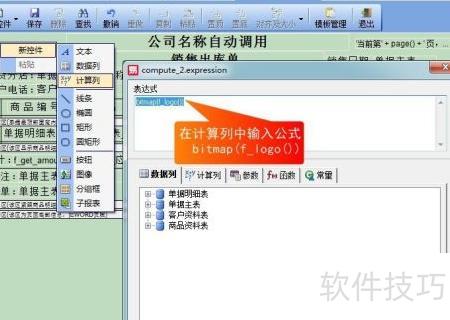 12、 第七步:在需插入LOGO的位置双击鼠标,从弹出菜单中选择,在窗口内输入bitmap(f_logo()),确认后完成输入。随后调整计算列标签的尺寸,使其适配LOGO的显示效果,具体样式可参考下图所示。