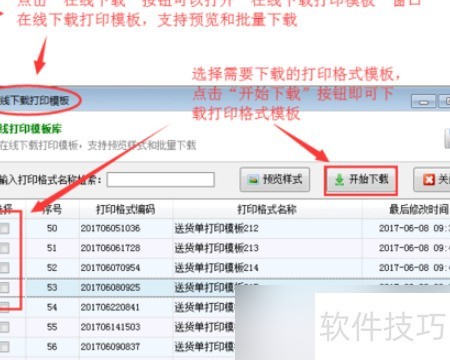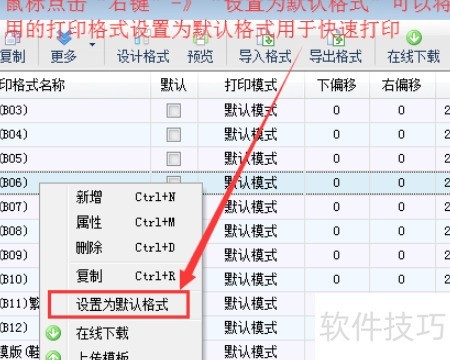 6、 在线下载的打印模板将在送货单设计界面中显示,右键点击所需模板,在弹出菜单中选择设置为默认格式,即可将其设为默认模板,方便开单时快速调用并打印,提升操作效率。