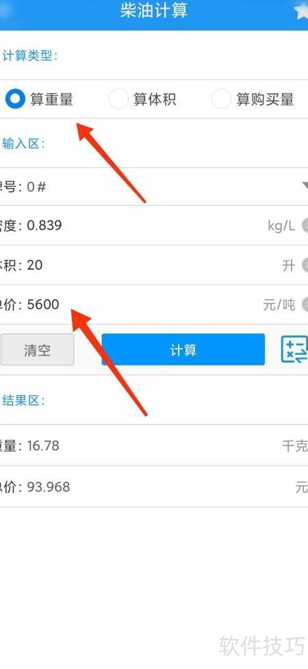 4、 进入页面后输入柴油重量数据即可自动计算