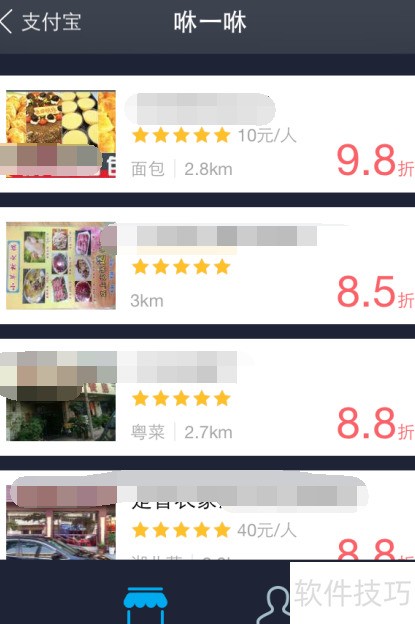 3、 点击咻一咻后,系统将自动跳转至附近商家的展示页面。