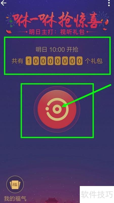3、 每日10点准时开抢,千万红包等你来,点击中间按钮参与。