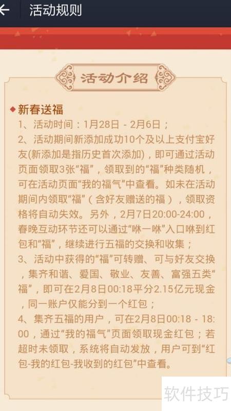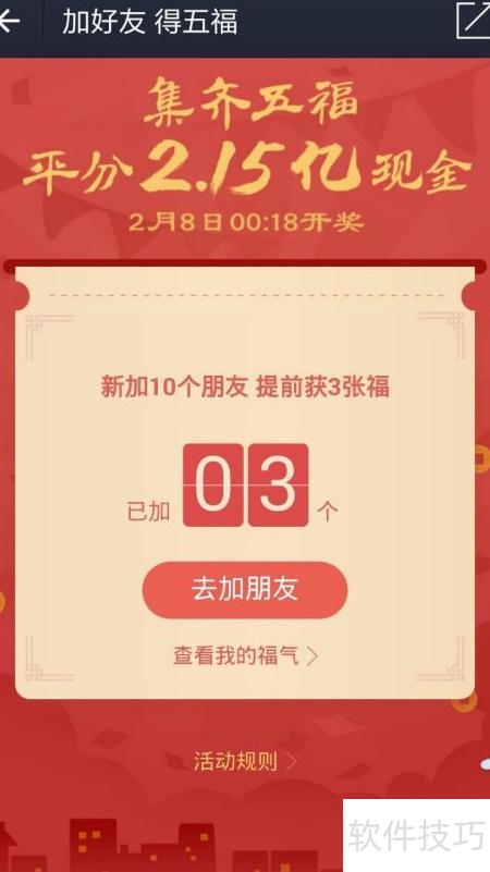 2、 加10个支付宝好友可获3张福气卡,详情见图示。