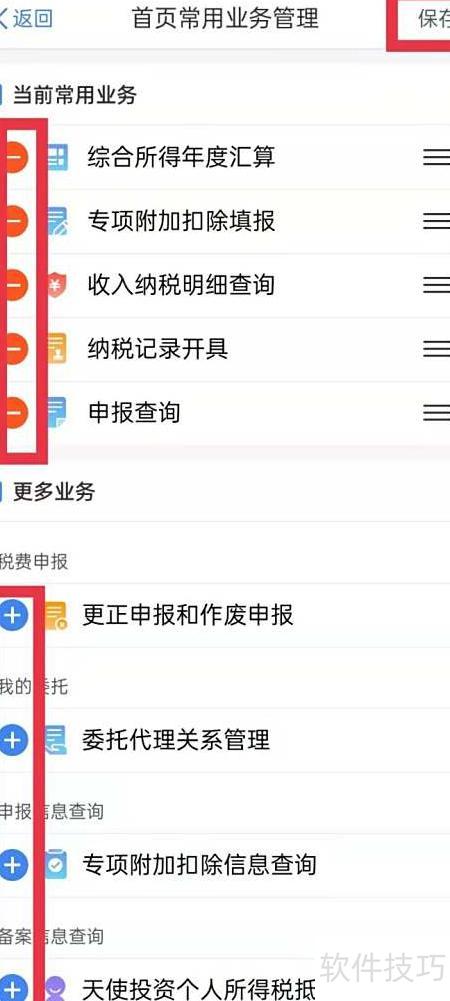在个人所得税APP的个人中心,进入常用业务管理,选择添加或删除后保存即可完成设置。