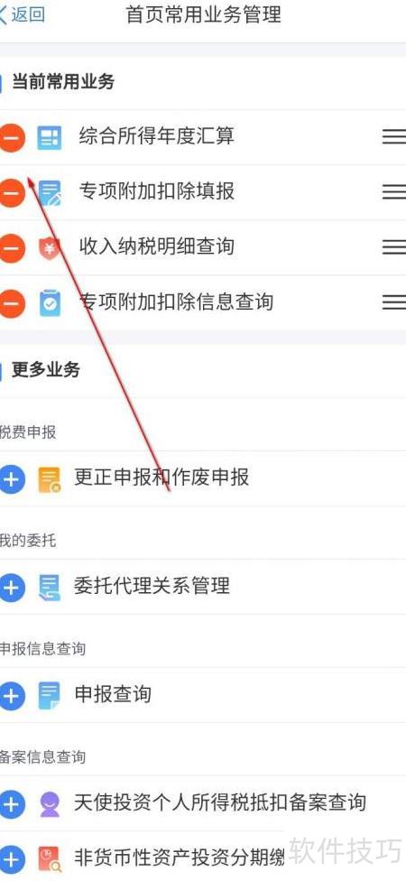 1、 null 2、 点击按钮,进入常用业务管理界面。 3、 点击左侧减号,即可完成管理操作。 ...