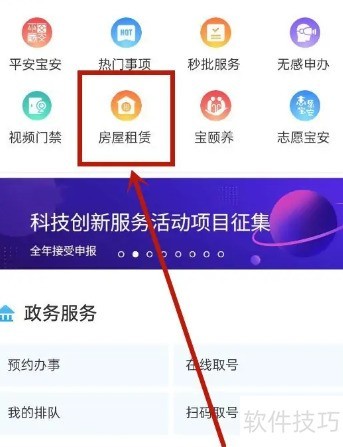 1、 打开软件主页,选择房屋租赁选项。