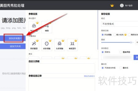 5、 启动美图秀秀批量处理功能,选择添加多张图片选项。