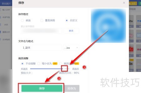 4、 调节画质后点击保存按钮,即可将图片转为JPG格式。
