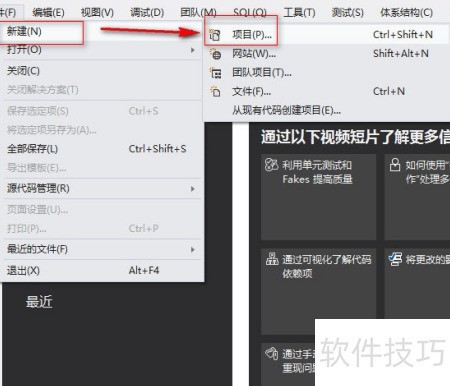 1、 文件菜单选择新建,再点击项目。