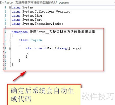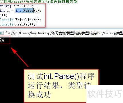4、 使用int类型的系统关键字Parse方法进行字符串到整数的转换操作。