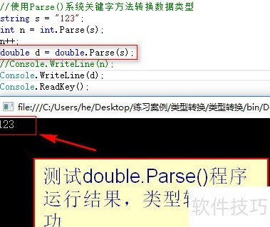 6、 在double类型中调用Parse()方法解析字符串数据。