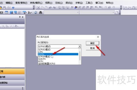3、 选择PLC型号后点击确定,操作所示。