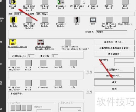 4、 选择PLC串口并确认,操作所示。