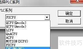 3、 在出现的PLC系列选择窗口中,选取当前所用型号,此处以FX系列为例进行说明。