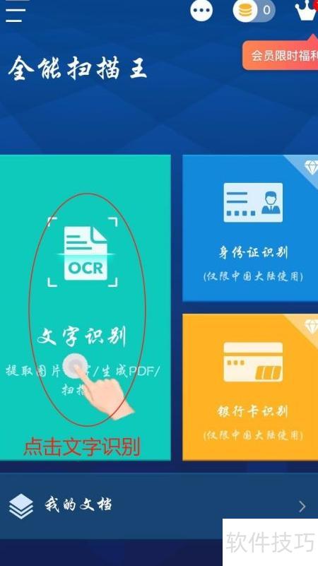 3、 启动应用,选择文字识别功能