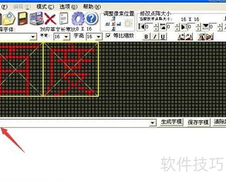 6、 输入文字后,软件上方会显示对应文字的点阵图效果,随后点击生成字模按钮,文字便会转换为计算机可识别的十六进制字模数据,清晰呈现于界面中,便于后续调用与处理。