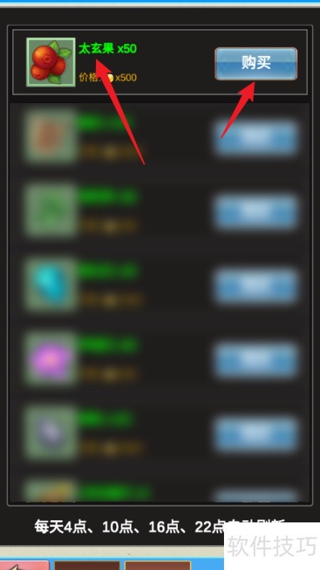 6、 进入坊市主页,找到太玄果并点击购买按钮即可完成购买。