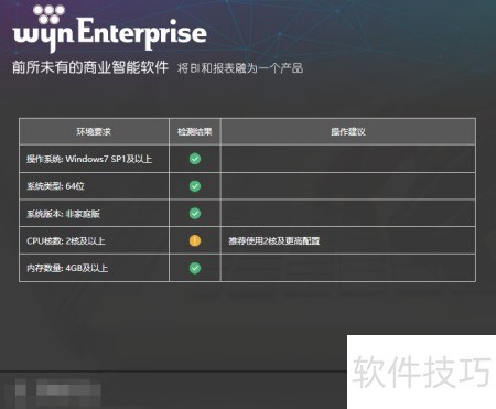 1、 双击运行 WynEnterprise-xx.exe 文件,启动安装程序,系统将自动检测当前环境配置,确保满足安装条件。