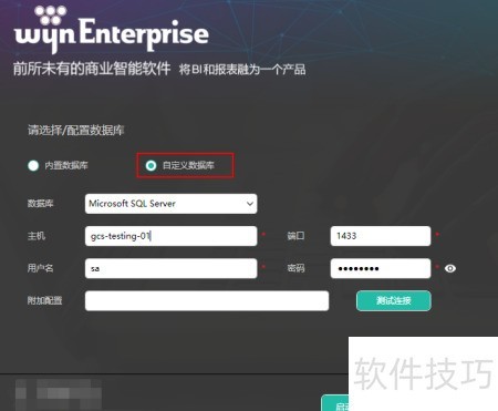 5、 使用自定义数据库时,需按图示配置相应信息。