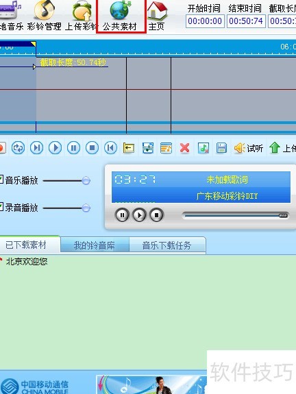 4、 打开客户端,我使用的是简化版,虽有高级版可选,但简化版已能满足需求。通过公共素材库进行搜索,也可直接浏览本地歌曲资源,操作便捷高效。