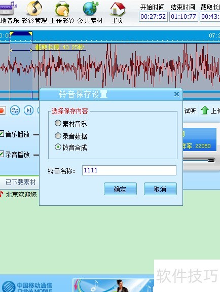 9、 将此彩铃命名为11111并保存