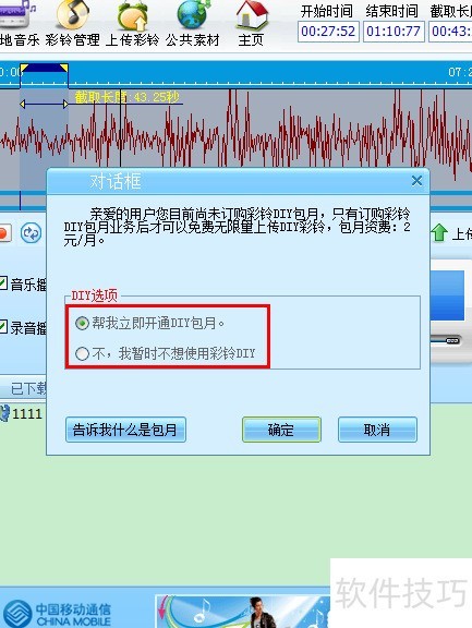11、 上传彩铃需付费,每月两元,我觉得价格合理,比较划算,便开通了该服务。