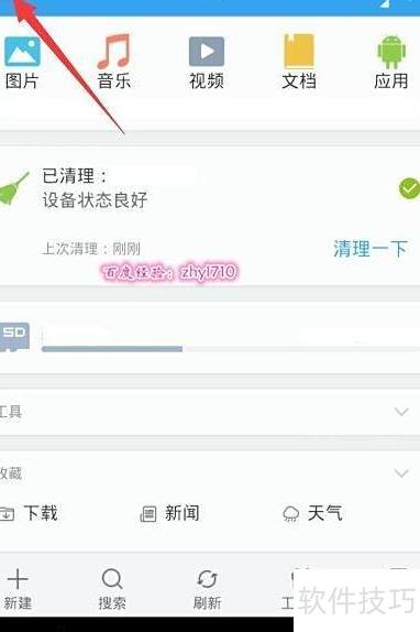 1、 首先需显示隐藏的文件夹,开启后打开ES文件浏览器,进入主界面。接着点击左上角最上方的图标,即可进行后续操作。整个过程简单直观,便于快速定位目标文件。