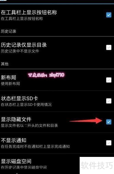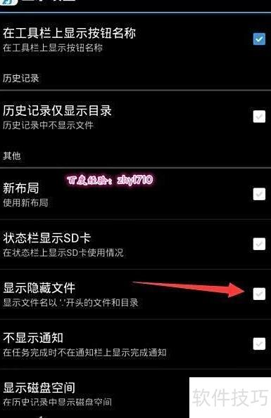 5、 在显示设置面板中,勾选显示隐藏文件选项前方的复选框,具体操作2所示。