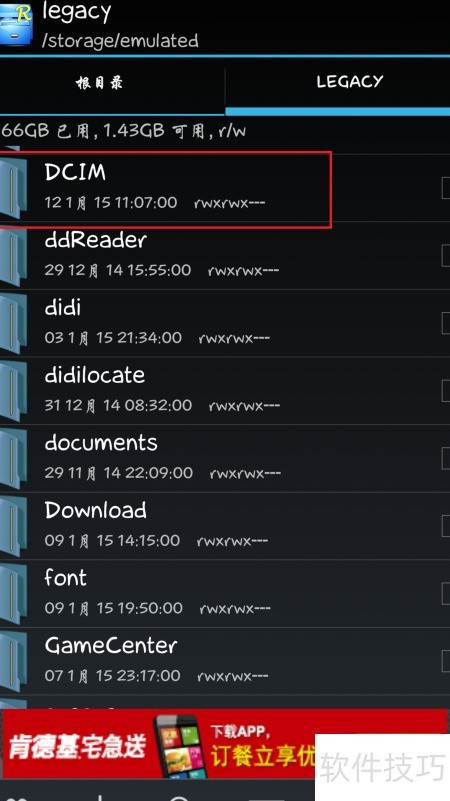 3、 进入手机存储中的DCIM目录,即系统默认相册位置。