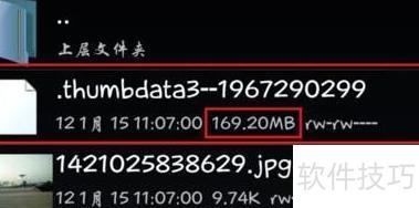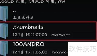 3、 进入该文件夹后,可见名为.thumbdata3-的子文件,属于安卓系统缓存文件,其大小会随照片数量增加而不断增大。