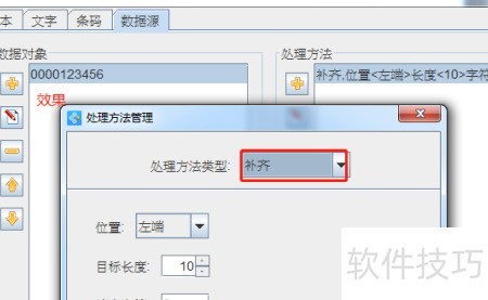 4、 当数据长度未达到指定长度时,系统会自动在左侧补足设定字符。例如,原始数据为123456,设置总长度为10,填充字符为0,则处理后结果为0000123456。该方法常用于条码打印软件中流水号的生成与格式统一。